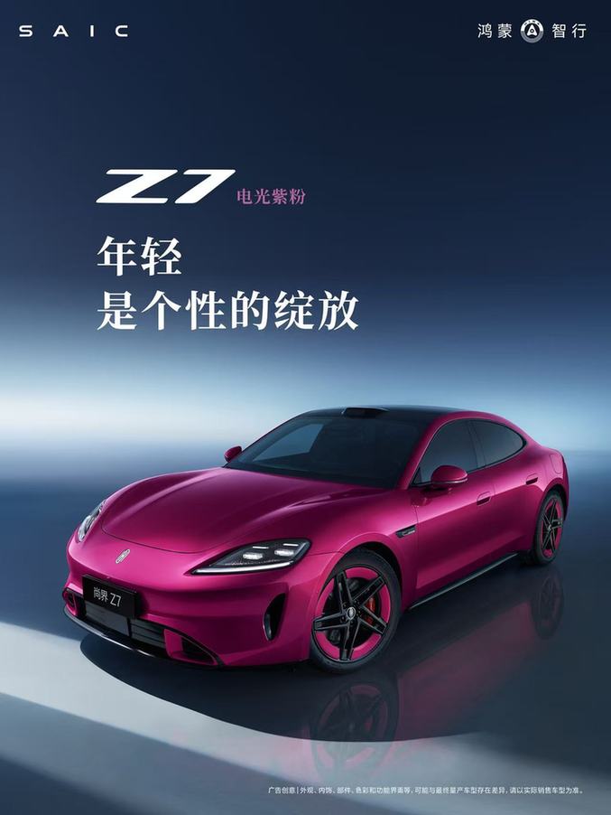 色彩是设计的灵魂,发布会上,电光紫粉、晚山新绿与琥珀金绿全新配色也同步曝光,每一款都独具特色,充分满足年轻用户的个性主张。余承东透露,尚界Z7还将带来更多种丰富的个性化车色选择,全方位覆盖年轻用户的多元审美偏好。