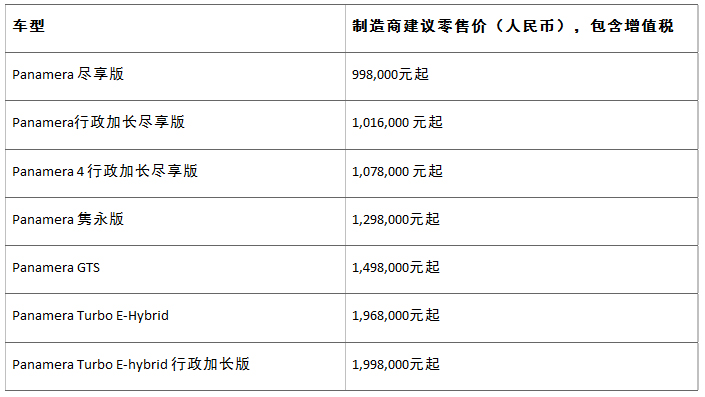 三款Panamera尽享版车型现已启动预售,并于4月初到店交付。