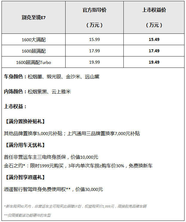 别克至境E7正式上市并开启交付,上市权益价15.49万-19.49万元